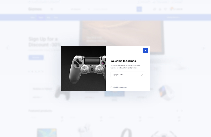 Include newsletter subscription invitation modal windows on the pages of your new tech store.