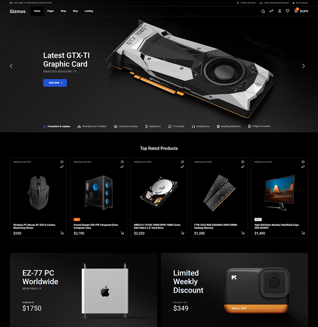 Everything your modern new electronics store website can ever need, all in one place. Build your online store with Gizmos!